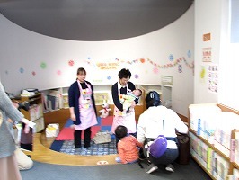 ![]() お母さんが本を選んでいる間、 赤ちゃんをお預かりします。 |